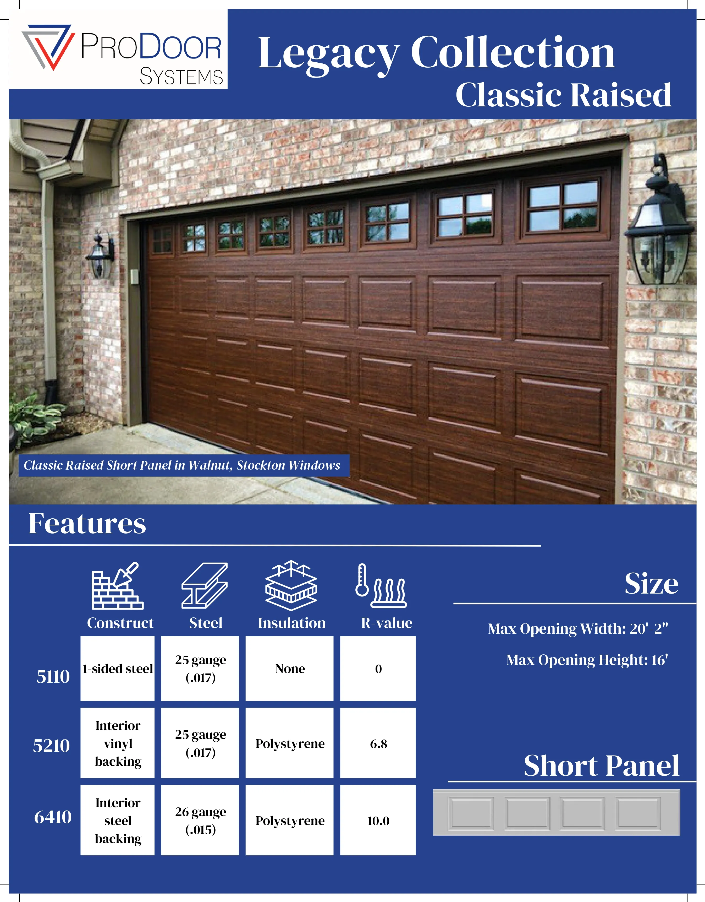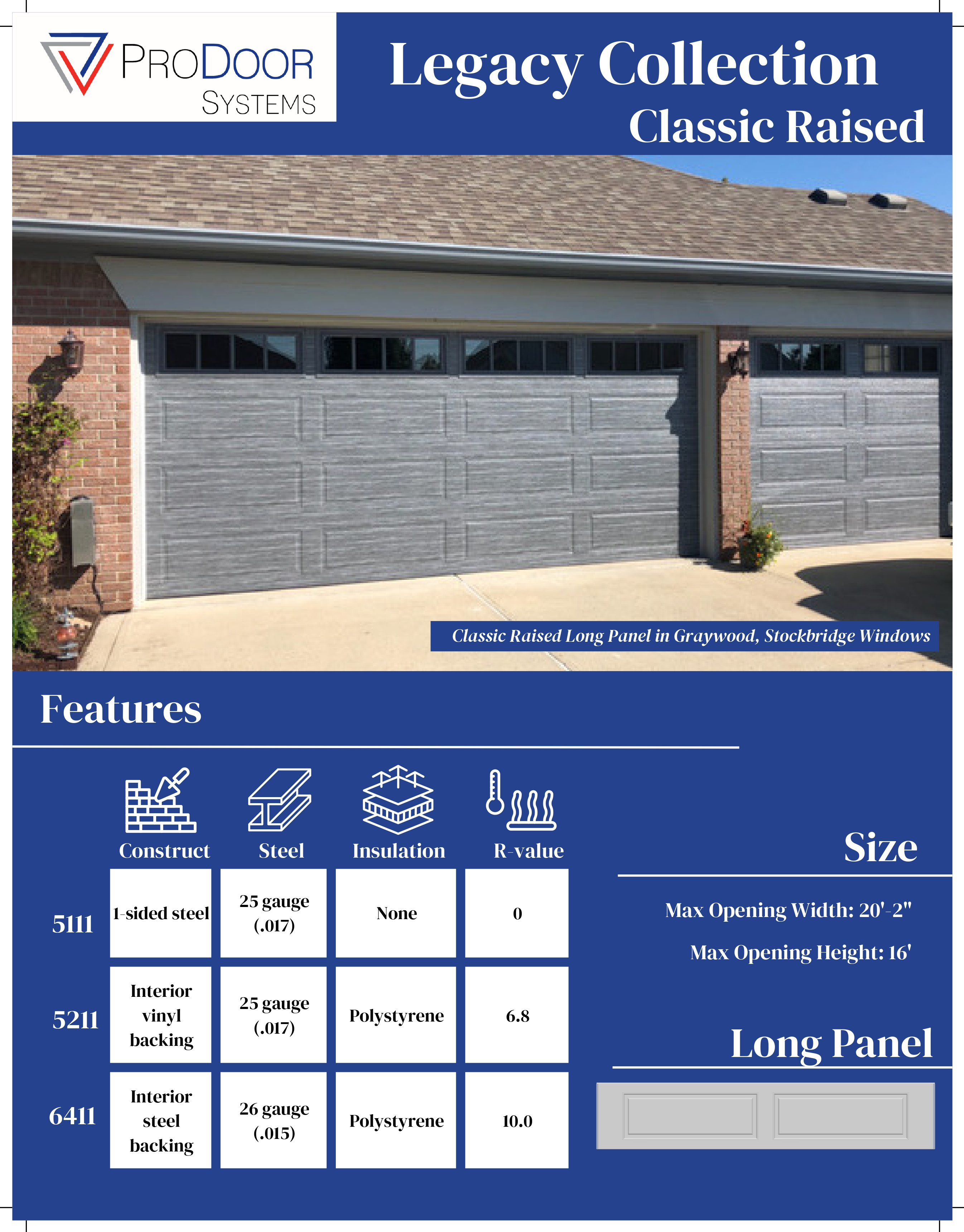 | Panel Style | Model Number | Exterior Steel | Max Width |